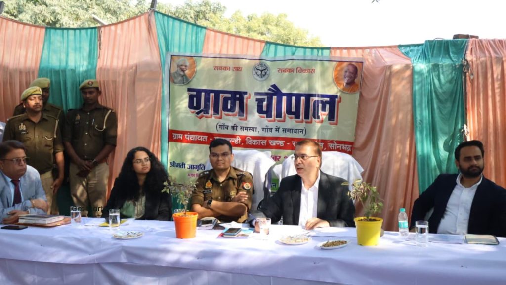 सोनभद्र(उत्तरप्रदेश)| राजस्व ग्राम मारकुण्डी के पंचायत भवन मारकुण्डी में जिलाधिकारी बी. एन. सिंह, पुलिस अधीक्षक अभिषेक वर्मा एवं मुख्य विकास अधिकारी जागृति अवस्थी द्वारा जन चौपाल का आयोजन किया गया। चौपाल में उपस्थित अधिकारियों द्वारा ग्रामीणों को विभागों की विभिन्न जनकल्याणकारी योजनाओं, सुरक्षा प्रावधानों एवं विकास कार्यों की विस्तृत जानकारी प्रदान की गई। इसके उपरांत ग्रामीणों की समस्याएँ सुनी गईं तथा अनेक मामलों का मौके पर ही निस्तारण किया गया। शेष मामलों के लिए संबंधित विभागों को समयबद्ध समाधान के निर्देश दिए गए।